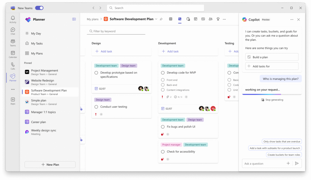 Juggling multiple projects? Copilot has evolved into a digital project manager. In Microsoft Loop and Planner, it automatically categorises tasks, assigns deadlines based on project urgency, and updates timelines as changes happen.